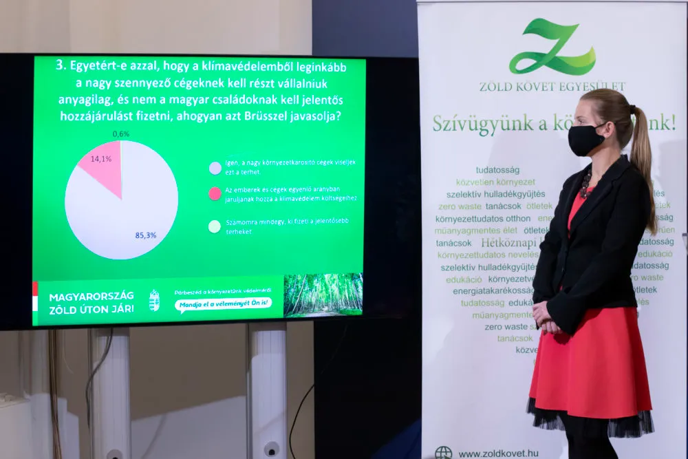 A válaszadók 85,3 százaléka egyetértett azzal, hogy a klímavédelemben a nagy szennyező cégeknek, és nem a magyar családoknak kell hozzájárulást fizetni, a brüsszeli javaslattal ellentétben.