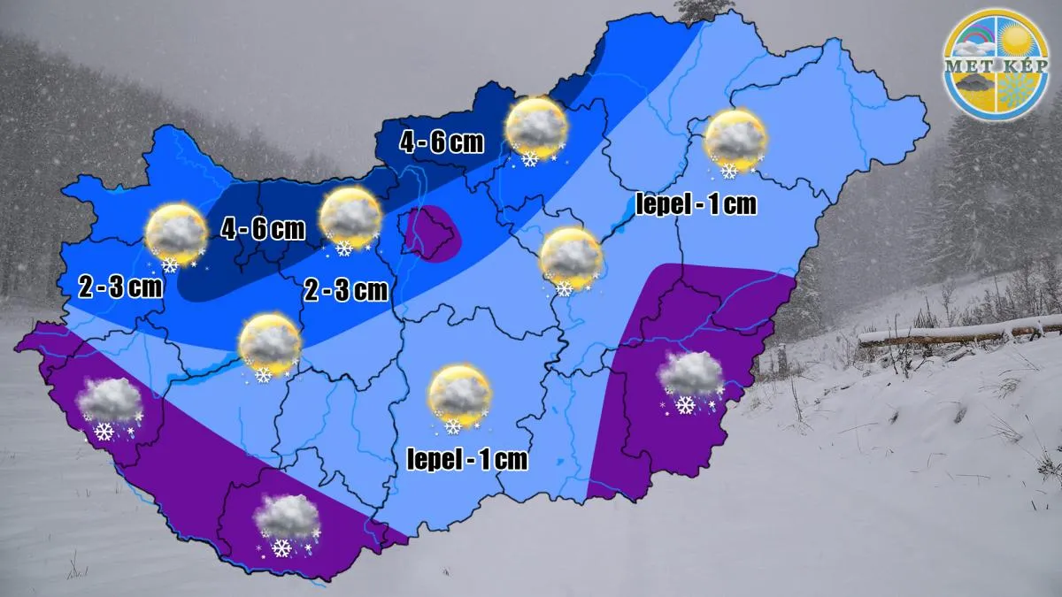 Majd délutántól egy úgynevezett squall line érkezik, mely hózáporokat, akár hózivatarokat is okozhat. A vonal várhatóan gyorsan fog hazánk fölött átvonulni. Ahova “betalál” a hózivatar/ erősebb hózápor, ott rövid idő alatt akár 5 cm-t elérő, vagy azt meghaladó hóréteg alakulhat ki – figyelmeztet a Metkép oldala.