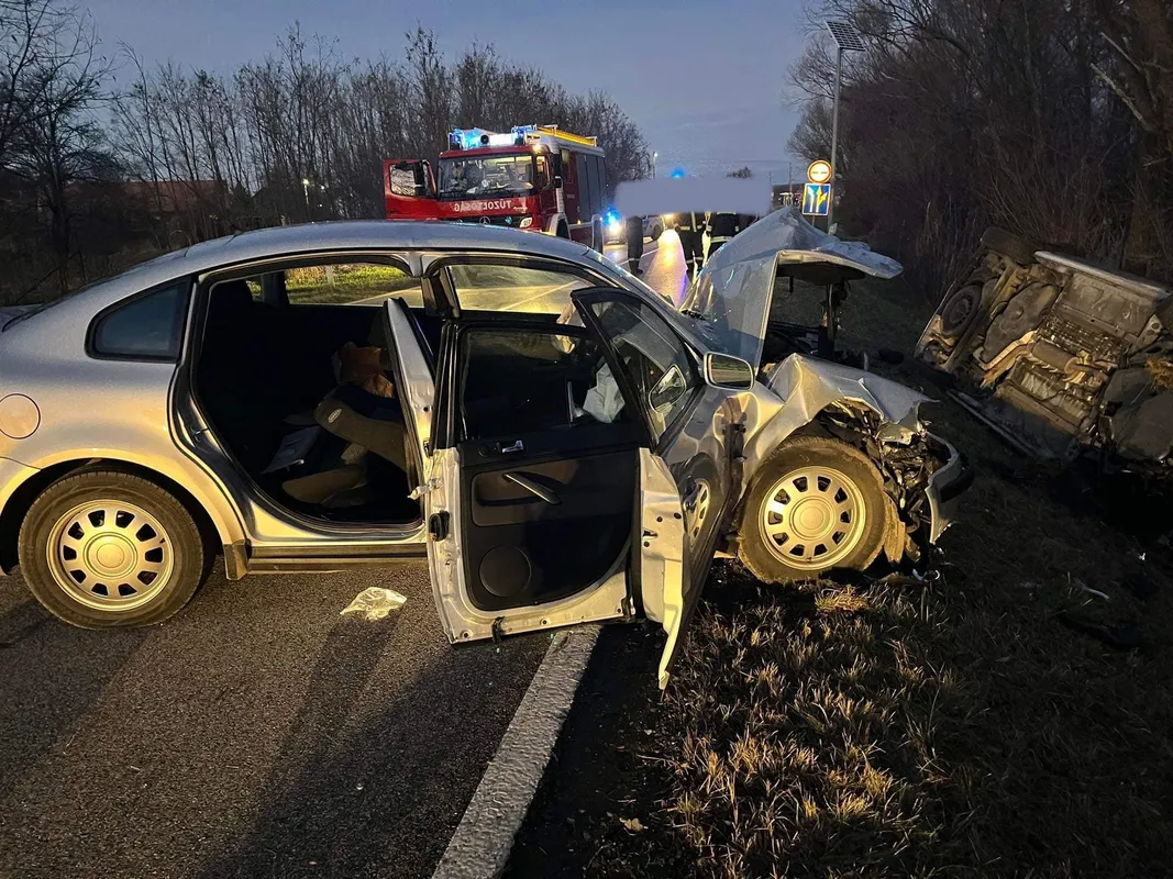 Két személyautó ütközött össze a 6-os főút 162-es kilométerénél Hidas térségében.