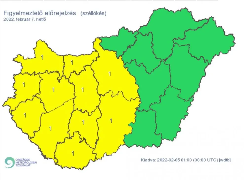 Az Országos Meteorológiai Szolgálat elsőfokú riasztást adott ki több megyére a heves széllökések miatt.