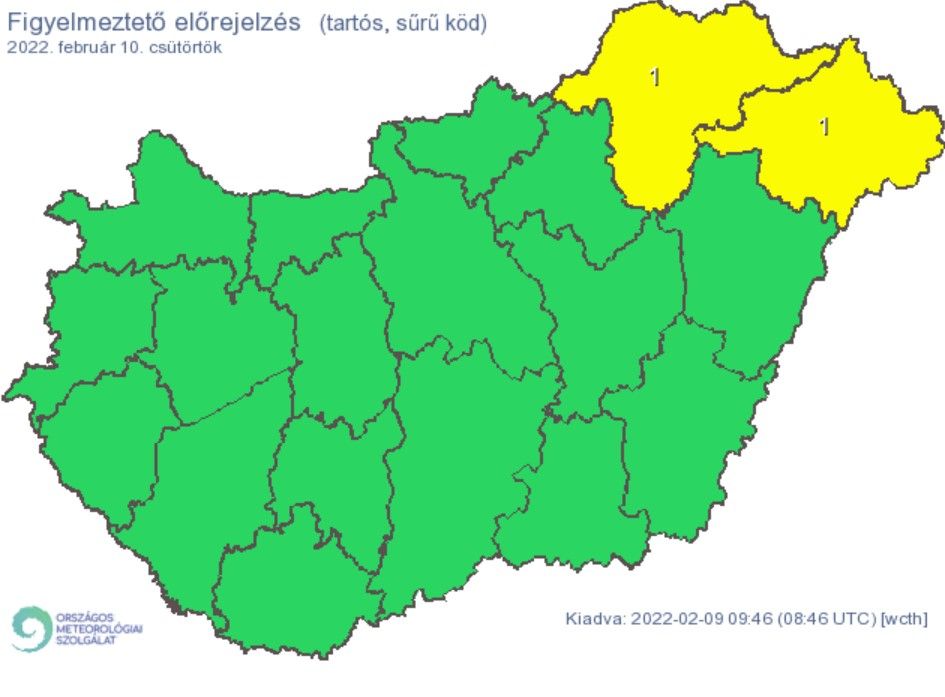 Csütörtökre virradó éjszaka elsősorban Borsod-Abaúj-Zemplén és Szabolcs-Szatmár-Bereg megyében sűrű köd, zúzmarás köd képződhet - írja a met.hu meteorológiai portál.