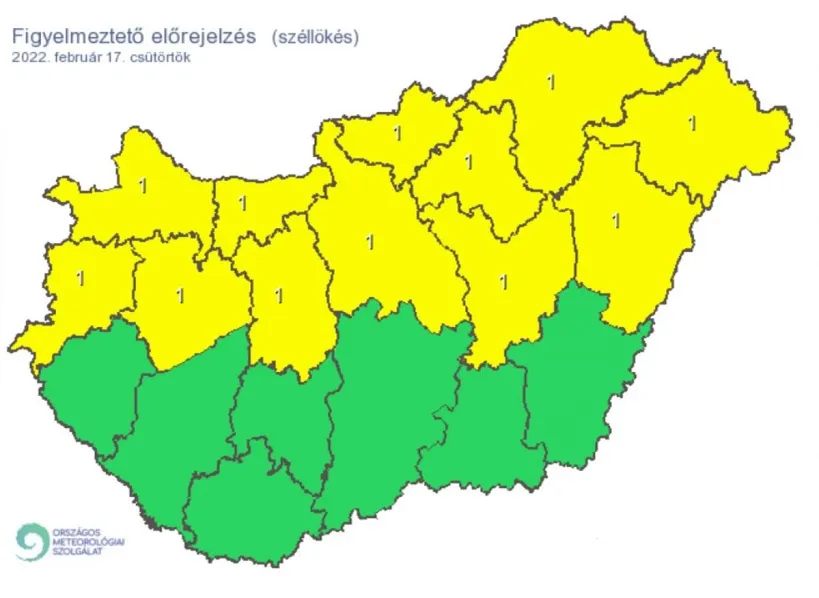 Tizenkét megyét érintő elsőfokú riasztást adtak ki a meteorológusok a viharos szél miatt. Csütörtökön a késő délelőtti, déli órákban már a délnyugati irányú szelet az északkeleti megyékben (Hajdúság, Nyírség) viharos (70-80 km/h) széllökések is kísérhetik.