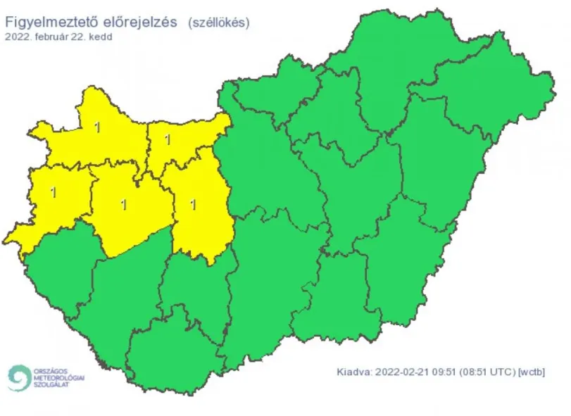 Északnyugat felől erősen megnövekszik a felhőzet, és a délelőtti órákban északon többfelé, máshol szórványosan valószínű eső, zápor, a hegyekben havas eső, hózápor. Továbbra is erős, néhol viharos lesz a légmozgás. A maximum 10 fok körül lesz.
