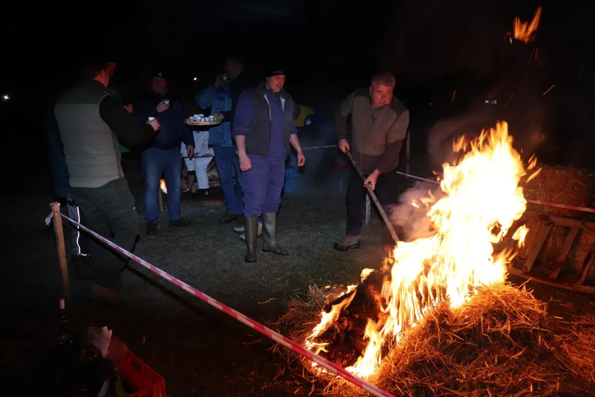 A horvátok úgy perzselik a disznót, hogy beterítik szalmával, ez az ősi módszer. A tűz leperzseli a disznó szőrét, így már könnyebb megtisztítani a bőrt.