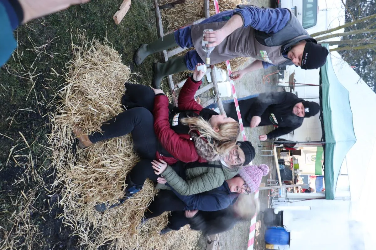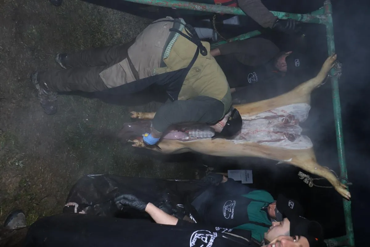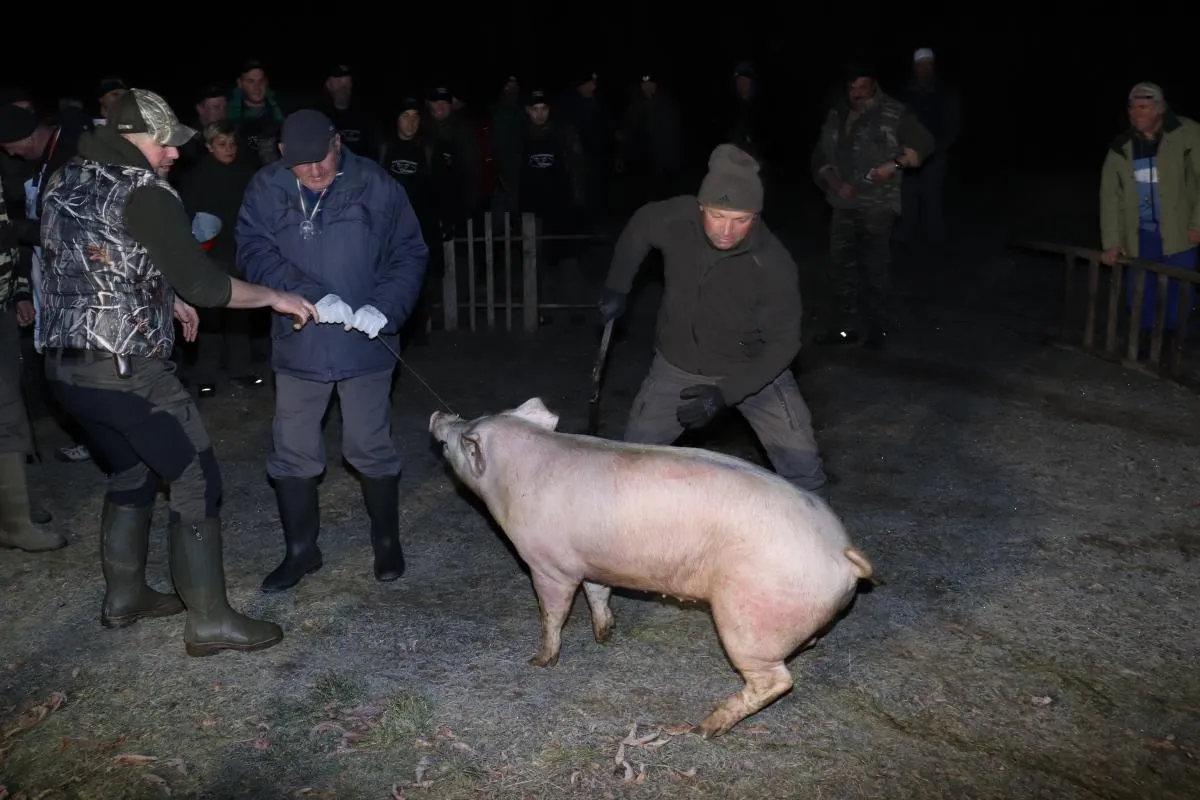 Szúrás után koccintanak a disznóra, aki életét adta, hogy táplálja az embert.