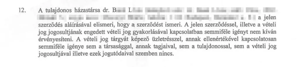 A kamuszerződés emellett arra is kitér, hogy a stróman ügyvéd házastársa aláírásával elismeri, hogy semmiféle igényt sem támaszthat a kiszervezett tulajdoni hányadra, Mártha Imre tehát még a stróman esetleges válása esetére is bebiztosította magát.