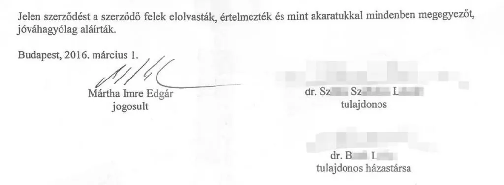 Beszédes az is, hogy a botrányos strómanszerződést, amelynek eredeti példányával rendelkezik a Metropol – minden a családban marad alapon – tanúként Mártha Imre leánytestvére illetve annak férje írta alá. Ezeket az aláírásokat személyiségi jogaik miatt nem mutatjuk meg a nyilvánosság előtt.