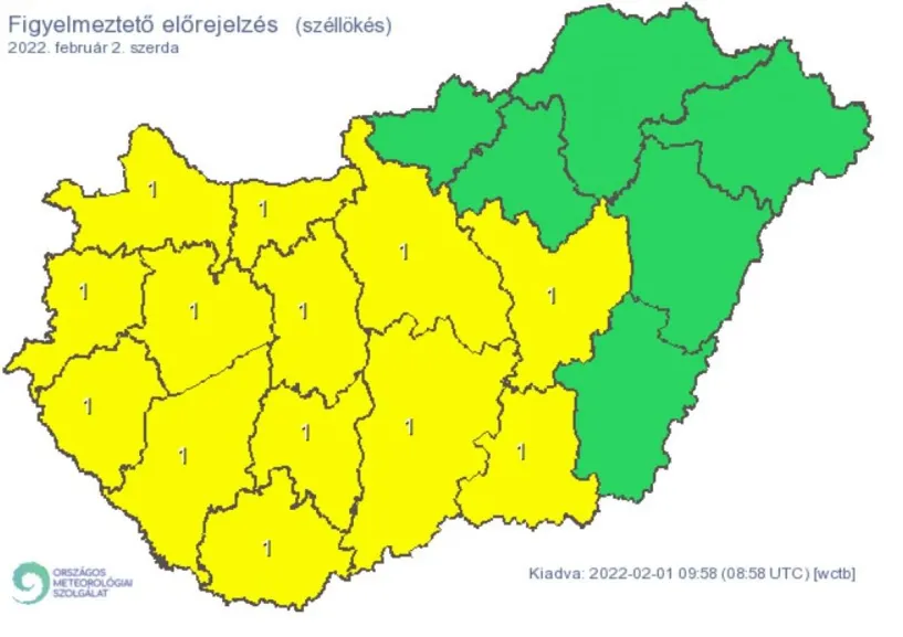 Szerdára vészjelzést adtak ki több megyére az erős széllökések miatt, és a havazás miatt is.