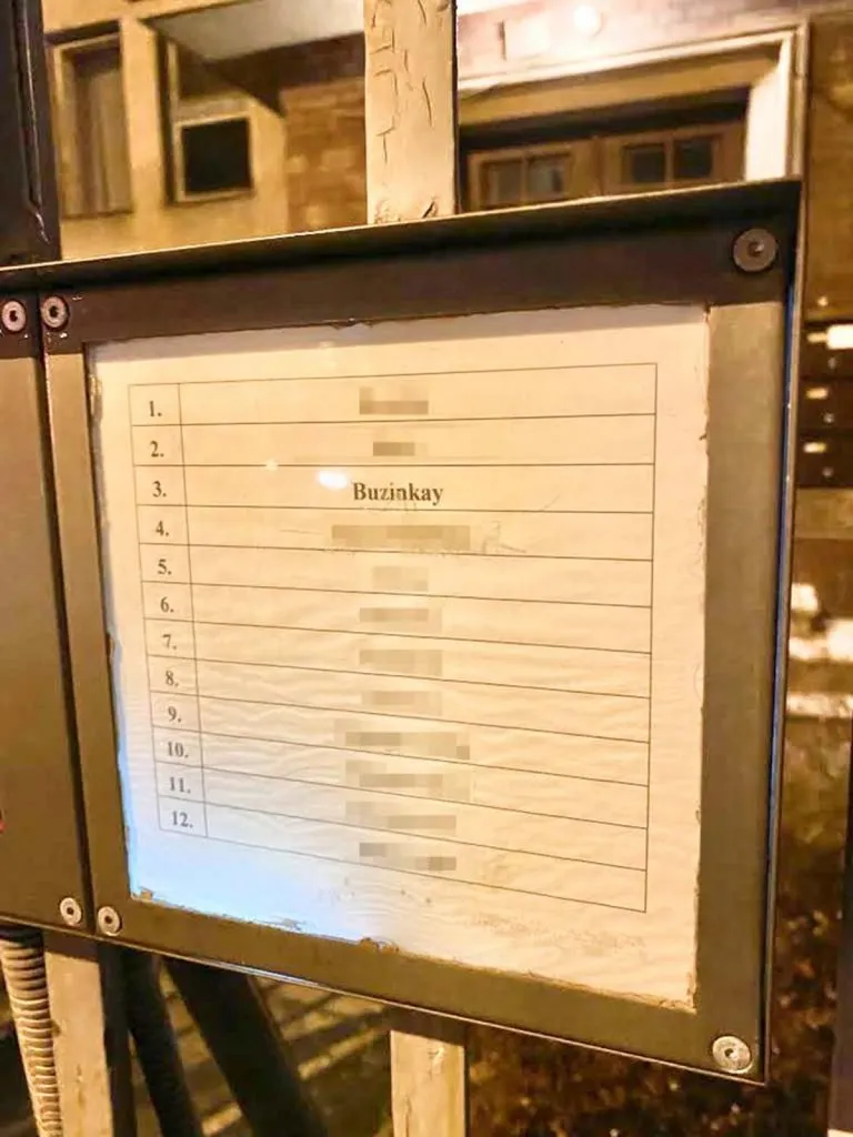 A Ripost megpróbálta kideríteni, vajon a szóban forgó társasház melyik lakásában él Karácsony. A kapucsengőn található nevek közül jó eséllyel a Buzinkay név látszott megoldásnak.