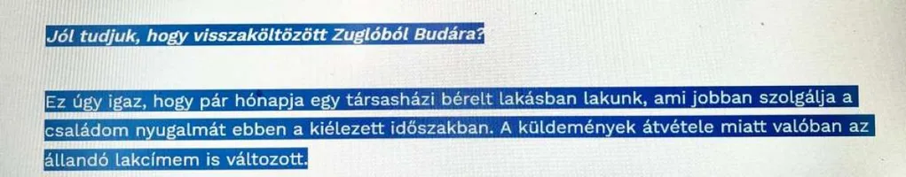 A főpolgármester a hírre első körben annyit reagált, hogy költözéséről korábban már maga is beszélt a nyilvánosságnak, az erről szóló nyilatkozatot azonban csak hosszas keresgélés után lehet megtalálni az interneten, Karácsony egy meglehetősen alákérdezős, propagandaízű 24.hu – anyagban ejtett erről néhány szót. Tavaly ősszel, egy kétségkívül előre egyeztetett kérdésre, mintha elébe akart volna menni kínos helyzeteknek, röviden ennyit talált mondani: