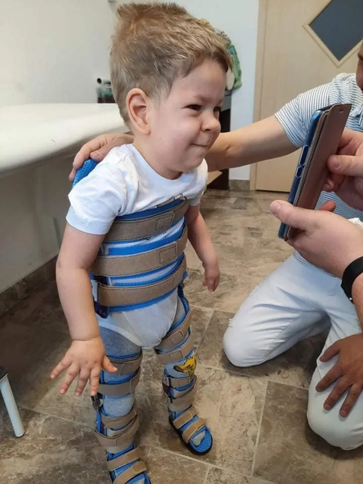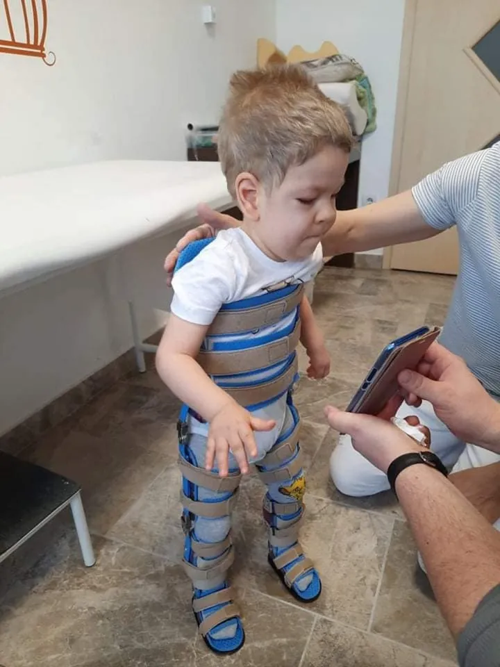 – újságolta kitörő örömmel a Ripost-nak az édesanya, Burinda-Szűcs Szabina, aki elmondta, hogy a kisfiúnak méretre készült el az állító szerkezet, amit rácsatolva segít tartani a lábát, a hátát és a csípőjét.
