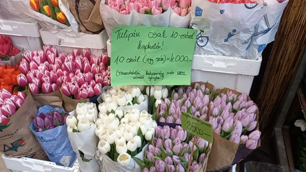 Ezzel szemben a 10 szálas tulipáncsokor a Fény utcai piacon 3500 forint.