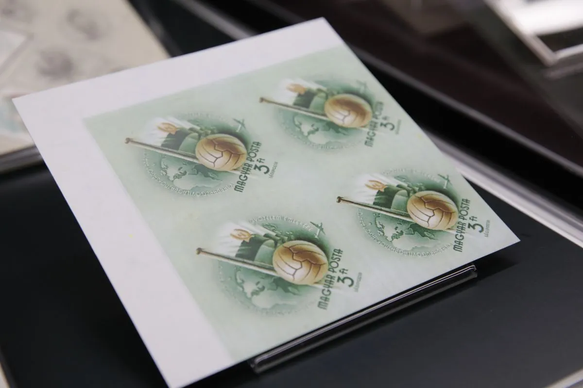 Az 1954-es labdarúgó-világbajnokság esélyese volt a magyar Aranycsapat. A várt győzelmet emlékbélyeggel akarta köszönteni a Magyar Posta. A gyártás már folyamatban volt, amikor jött a lesújtó hír a hazai válogatott vereségéről. A nyomásban éppen a piros szín következett volna, mikor leállították a munkát és a félkész bélyegeket megsemmisítették.