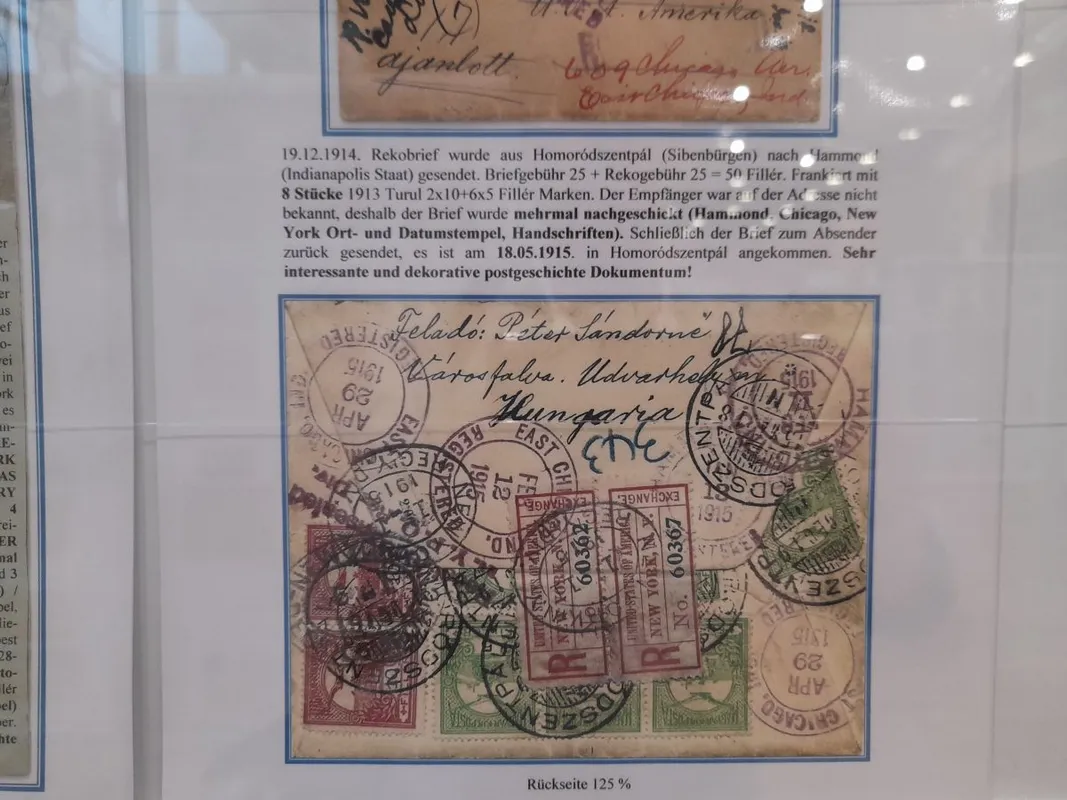 A legtöbbször utánküldött levelet 1914-ben adták fel Erdélyből Indianapolisba. Mivel a címzett közben elköltözött, így a boríték több amerikai államot megjárt, majd fél év múlva visszaérkezett a feladóhoz.