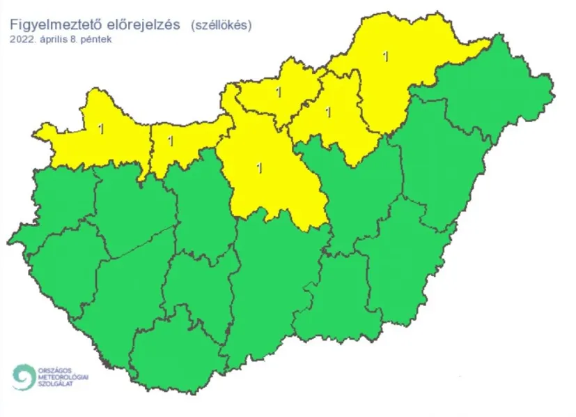 Péntekre több megyére is figyelmeztető előrejelzést adott ki az Országos Meteorológiai Szolgálat széllökések miatt: