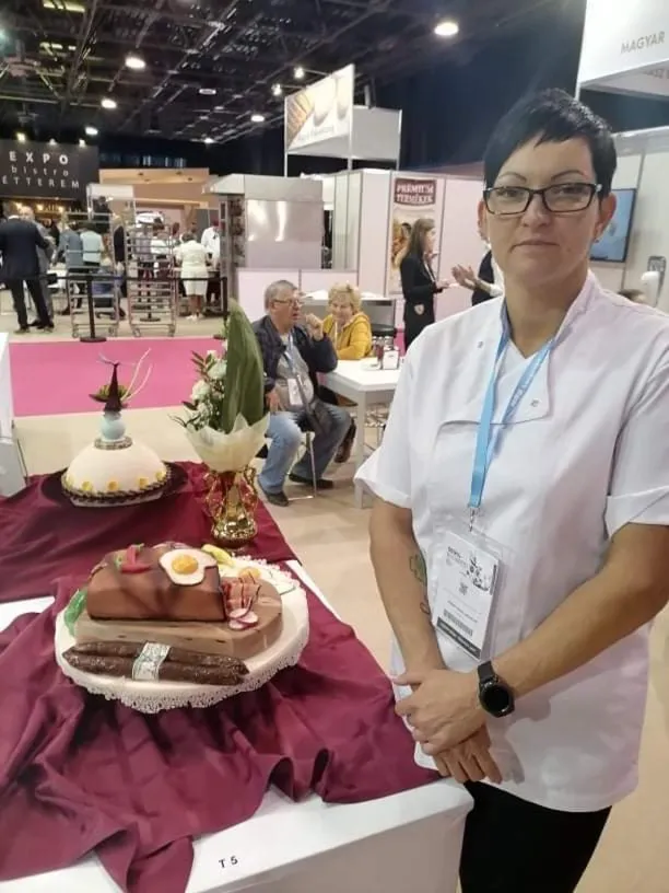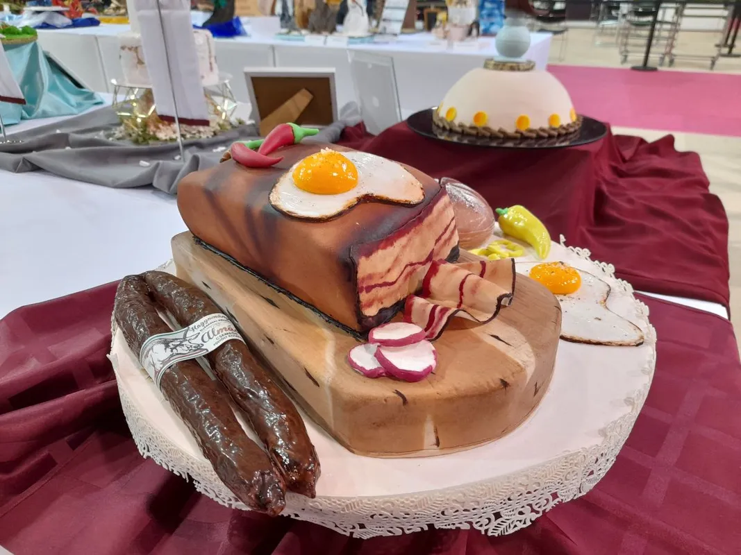 Ez volt az első versenyem. Olyan művel szerettem volna indulni, amire ha ránézünk, nem gondolnánk, hogy torta. Nálunk, Rácalmáson még nagy hagyománya van az effajta ételeknek. A kolbász azért került rá, mert ahol dolgozom, ott helyben készítik a házi kolbászt, és ez megihletett.