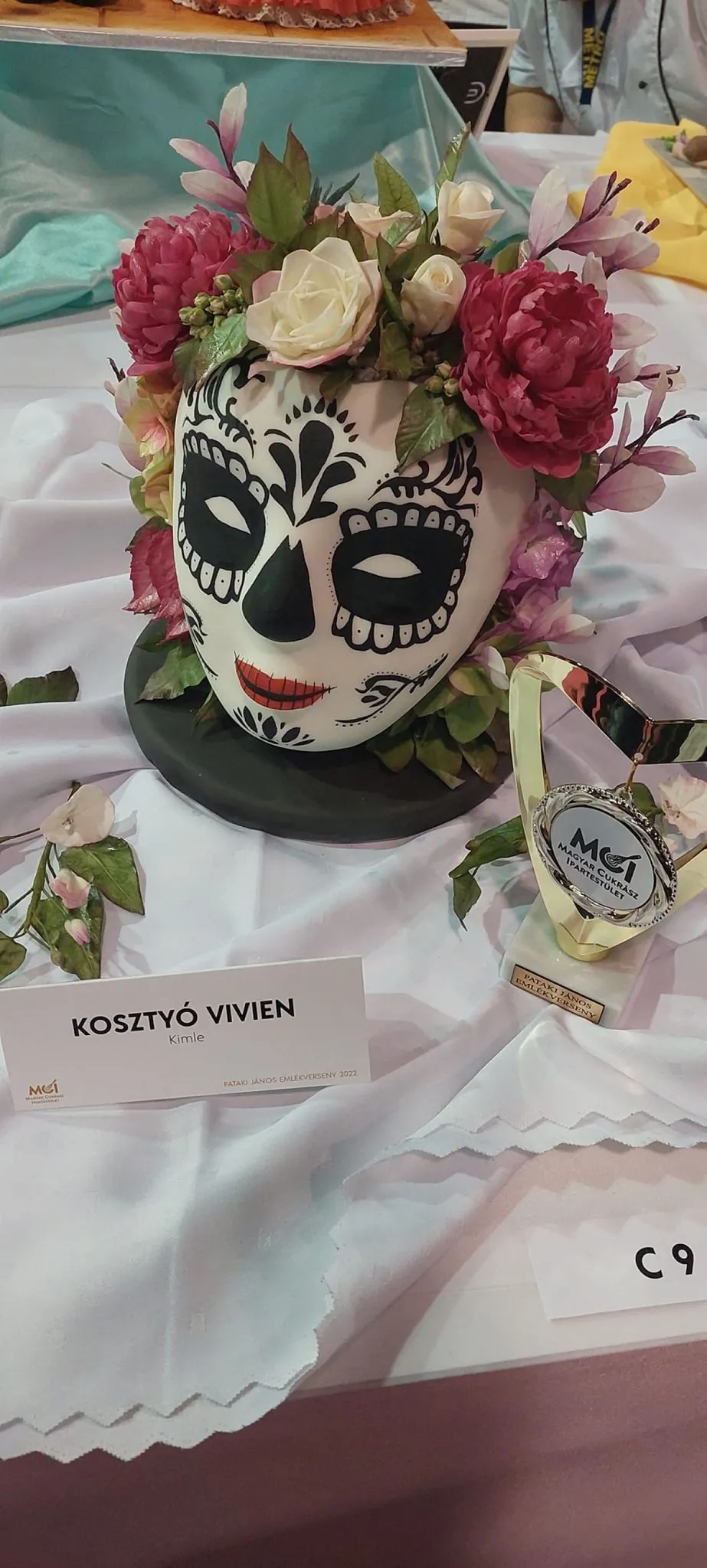 A Coco című mese inspirálta a munkámat, amiben megfogott a csontvázak díszes kinézete. Utánanéztem a mexikói kultúrának. Ezt a figurát La Catrinának nevezték el, és már amikor megpillantottam, szerettem volna látni, milyen lehetne cukorból. Már előbb meg akartam valósítani, csak a Covid miatt mostanában nem voltak versenyek.