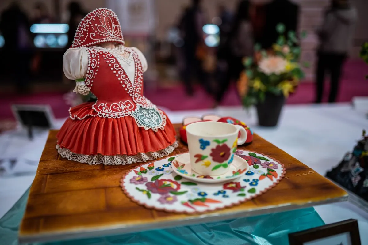 Szeretem a cukorfiguráimat, bábuimat különböző ruhákba öltöztetni. Innen indultam el, amikor készültem a versenyre. Az unokahúgom néptáncolt régebben, így jött a szegedi papucs kiegészítőnek. Kaptafát a cipészünktől kaptam, annak a segítségével megformáztam.