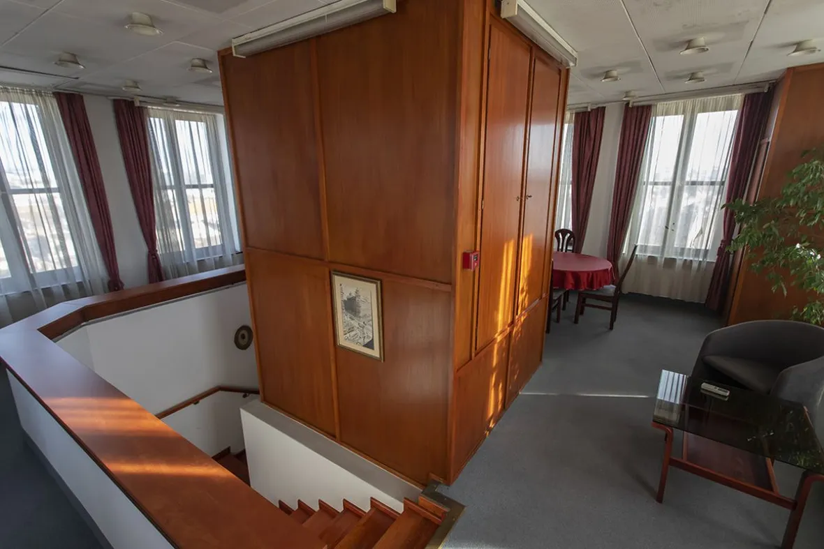 Az építész olyan víztornyot szeretett volna ide építeni, ami nem rontja a városképet, ezért mintaképpen egy toscanai városházát választott. A 47 méter magas épület legtetején helyezkedett el a hatalmas, szegecselt víztartály, amely egy szűk folyosón körbejárható volt. Alatta a toronyszárban pedig a körlépcső, amely egy henger alakú magot ölelt körül. A lépcsőmagban ma lift közlekedik, fent, a tartály helyén tárgyalóterem található.