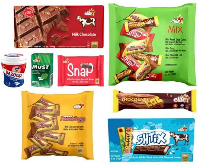 Termékek megnevezése: Elite márkájú csokoládék, édességek, sütemények, ostyák, rágógumik, puffasztott rizsek