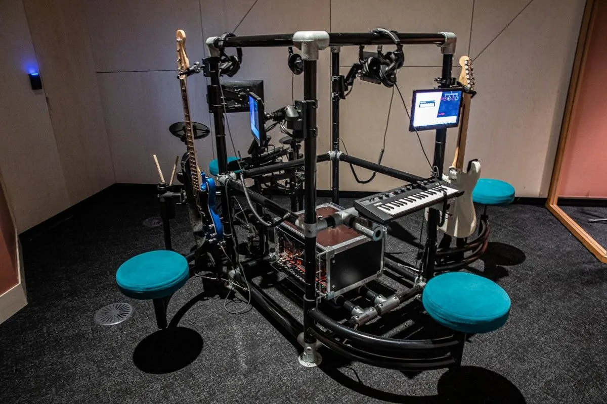 Akár felnőttek számára is izgalmas játszótér a Kreatív Stúdió, ahol vetített oktatóvideókon keresztül bárki megtanulhat egyszerű akkordokat, dallamokat, ritmusokat gitáron, basszusgitáron, szintetizátoron, dobon, de kipróbálhatja magát énekesként is. A gyakorlást követően a rögtönzött együttes elkészítheti első közös hangfelvételét is a stúdióban.