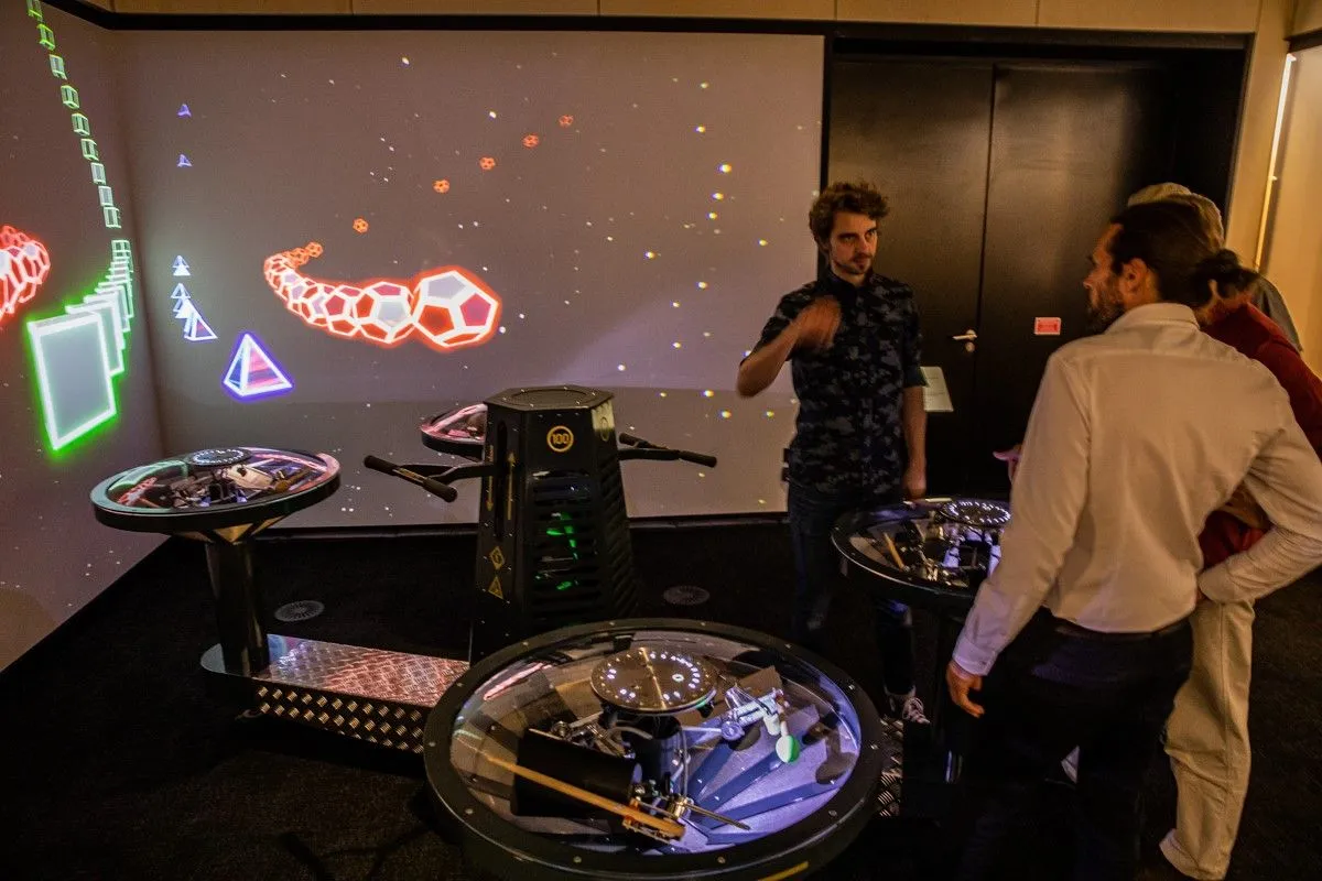 A szabad játékot lehetővé tevő térben bárki kipróbálhatja magát az Orchestrion virtuóz robotzenekar karmestereként vagy rögzítheti első hangfelvételét a Kreatív Hangstúdióban, létrehozhat négyszólamú ritmuskompozíciókat a Ritmushajtányon, vagy megcsodálhatja, ahogy egy százéves elektrofon hangszer, a Chladni-Theremin hangjai szebbnél szebb geometriai mintázatokat rajzolnak.