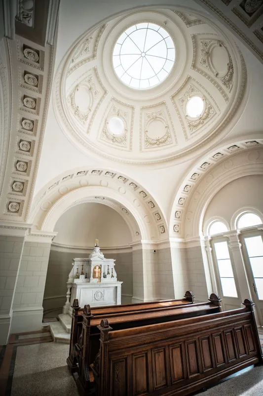 A kastélyba érkező a bejáratnál kiszállva a lépcsőházba lépett be, míg a kocsi továbbhajtva beállhatott a ma is látható istállóba. Azzal szemben állt a kocsiszín. A melléképületet nyitott folyosó kapcsolta össze a főépülettel, amelynek keleti szárnyán találjuk a kápolnát.