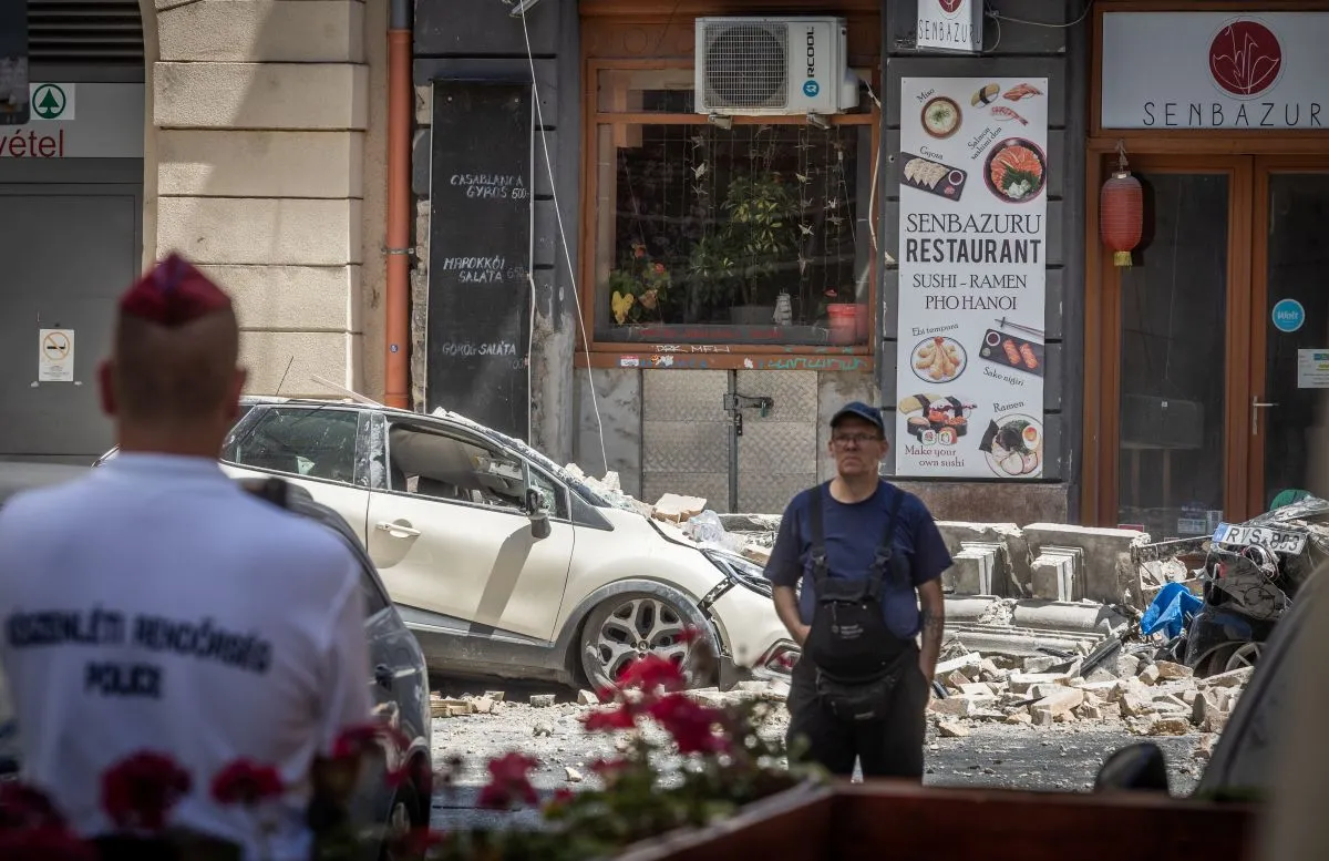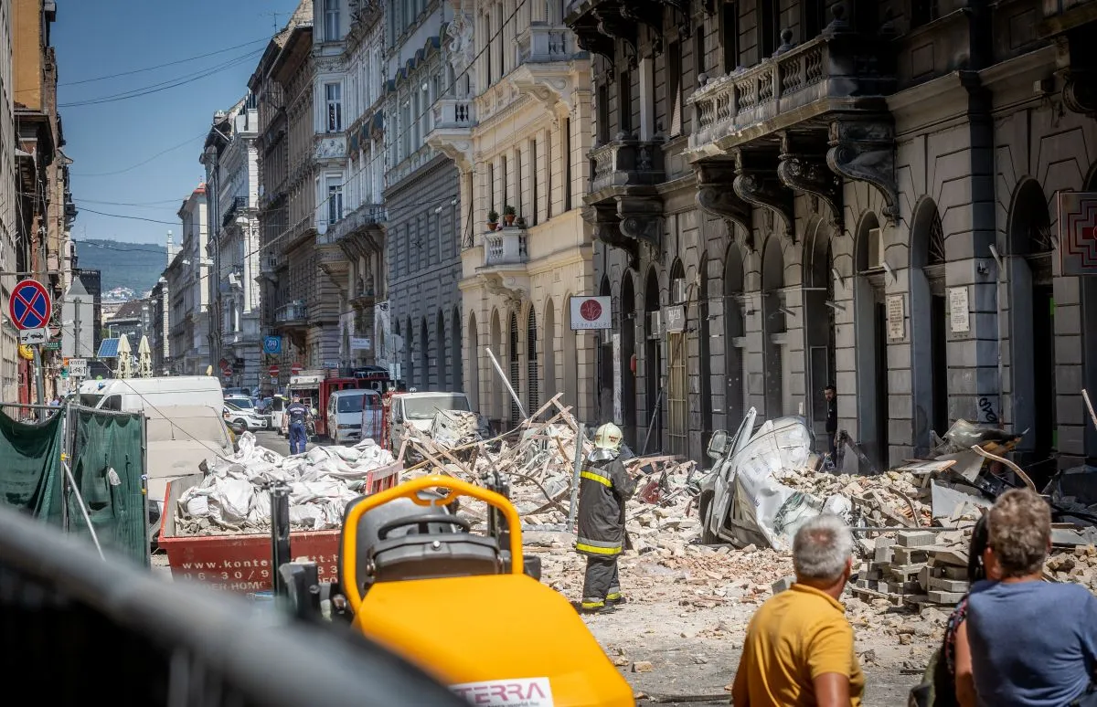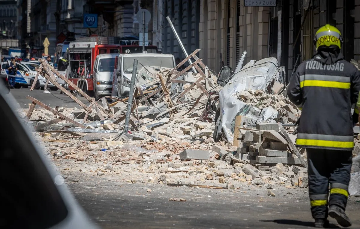 Mint a Ripost megírta, leomlott a VI. kerületi, Jókai utca 1. számú ház tetőszerkezetének egy része hétfőn. Úgy tudni, a balesetben négyen sérültek meg: három ember könnyebben, egy pedig súlyosan. Több autó a roncsok alá került, sokan pánikba estek. Nem csoda, több tonnányi törmelék terítette be a járdát, a porfelhő 20 méter magasra csapott fel, és legalább négy autó használhatatlanná vált.