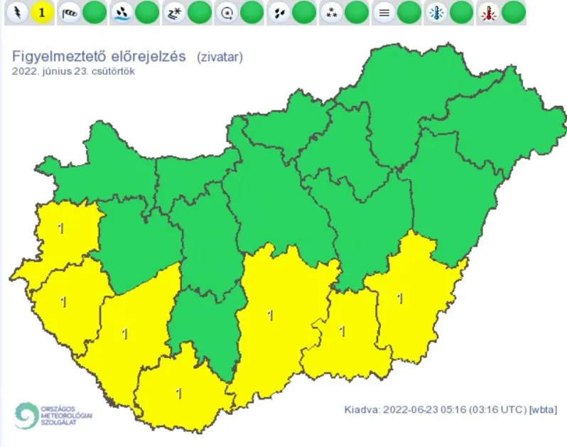 Csütörtökön reggel érdemes esernyővel elindulni otthonról, hajnalban zivatarokra elsősorban a Dunántúl nyugati, délnyugati felén lehet számítani, amelyek fokozatosan a Dél-Alföld nyugati részeire is átterjedhetnek, majd dél felé elhagyják térségünket, délelőtt már csak néhol a Dunántúlon lehet dörgés, villámlás.