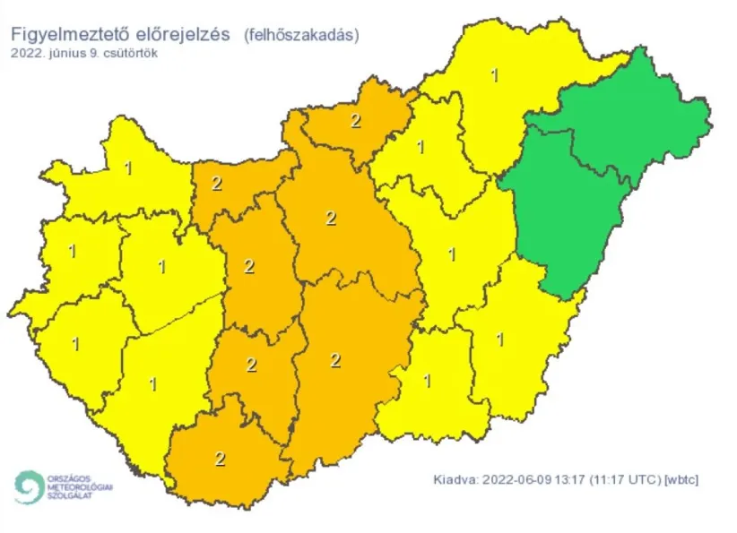Már másodfokú riasztást van érvényben a zivatarok miatt.