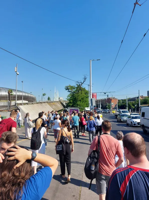 Leszállítják az embereket az 1-es villamosról a Puskás Ferenc stadionnál. Állítólag áramprobléma okozza a fennakadást. A Ripost egyik olvasója azt írta lapunknak, hogy hiába várják a pótlóbuszt, az csak nem akar megérkezni.