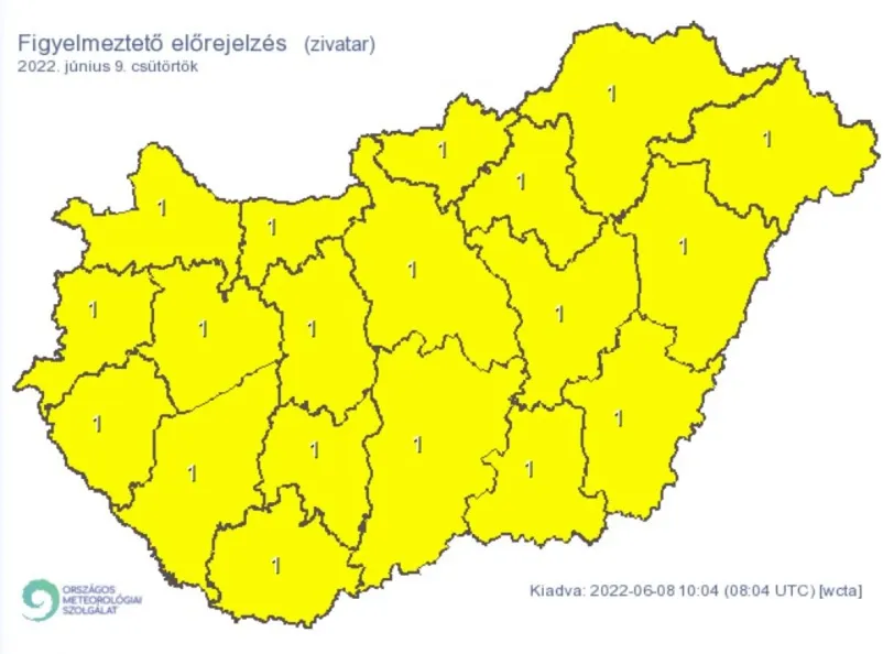Az egész országra elsőfokú riasztást adtak ki felhőszakadás miatt. Az intenzív záporokból, zivatarokból rövid idő alatt 25-30 mm-t meghaladó csapadék hullhat.