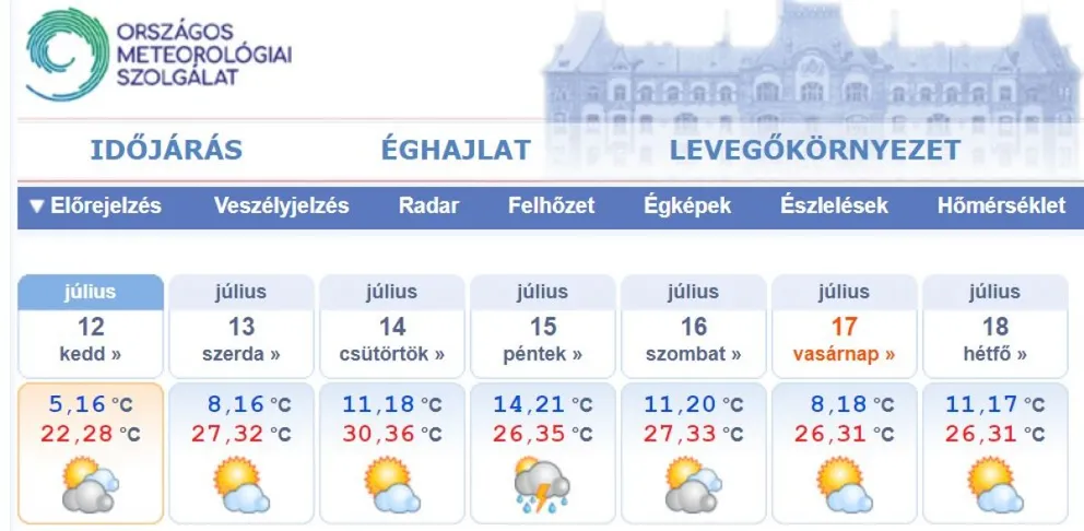 Új erőre kap a nyár: a keddi 28 fokos maximum már minden értelemben a múlt: szerdán 32, csütörtökön akár 36 fokos maximum is várható, amit 35 fokos csúcs követ. A forróságot a hétvégén is kénytelenek leszünk tűrni, a hőség csak pár fokkal lesz elviselhetőbb. Szombatra 33, illetve vasárnapra és jövő hétfőre 31 fokot prognosztizál az Országos Meteorológiai Szolgálat.