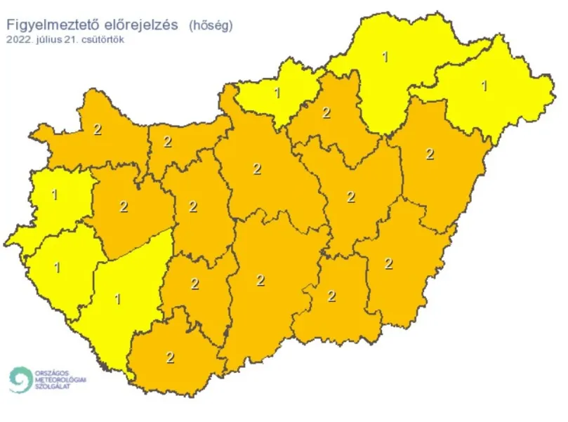 A középhőmérséklet az ország döntő részén 27-28, főként a középső tájakon, illetve városi környezetben helyenként 29 Celsius-fok körül alakul. Az országos tisztifőorvos szerdától szombat éjfélig elrendelte a legmagasabb fokozatot, a harmadfokú hőségriasztást.