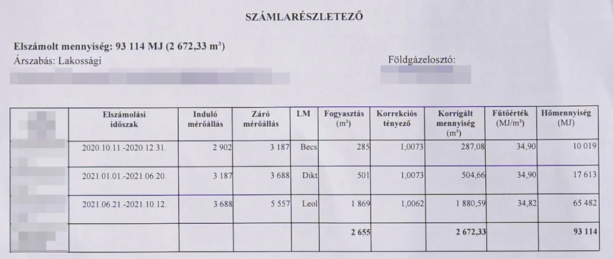 1. Keressük meg a legutolsó éves elszámoló gázszámlát!