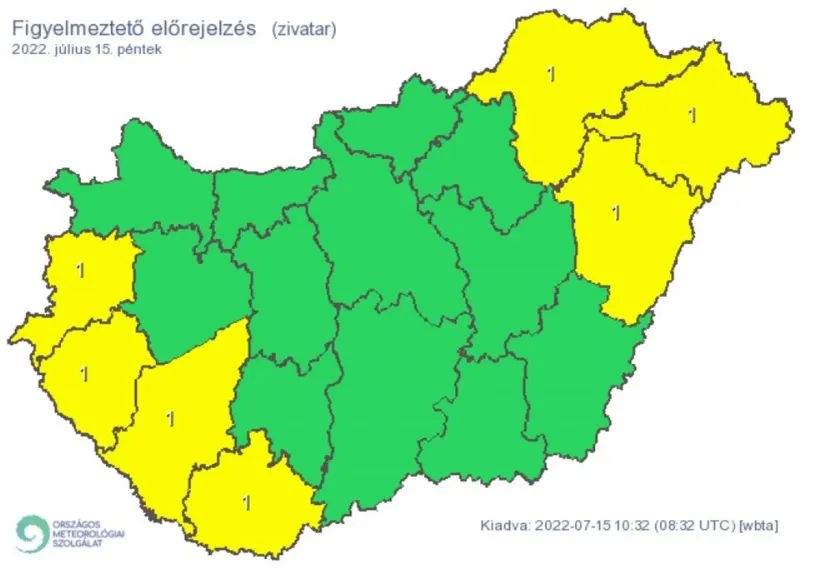 Az érkező hidegfront hatására a déli órákig az Északi-középhegységben, valamint az Alföld északkeleti, északi részén lehetnek zivatarok. A délutáni, esti órákban pedig az Alpokalján, illetve a Dunántúl délnyugati részén, majd éjszaka egyre inkább a déli országrészre korlátozódva fordulhatnak elő zivatarok. Kísérőjelenségként szélerősödés (~ 50-60 km/h), lokális csapadék (~ 10-15 mm), kisebb eséllyel apró szemű (< 1 cm) jég társulhat – írja az Országos Meteorológiai Szolgálat.