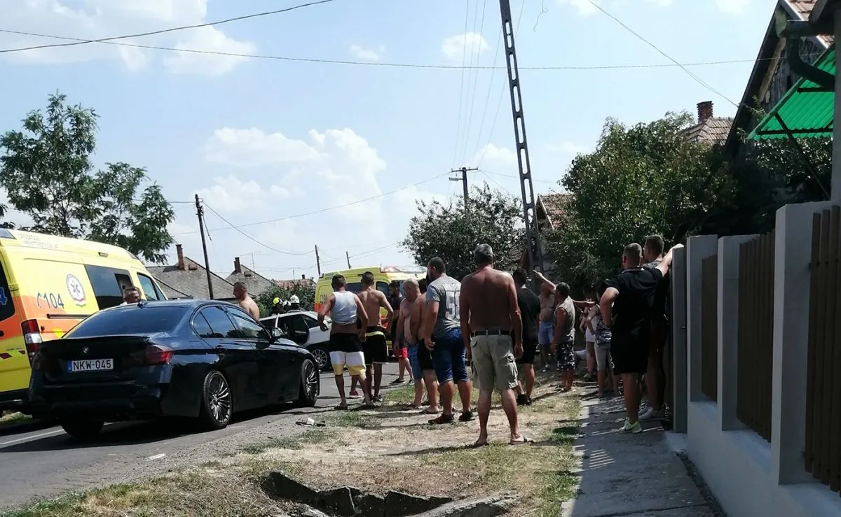 A férjemet vártam az autóban, hogy elinduljunk édesapámhoz. Ekkor érkezett nagy sebességgel egy Opel Astra. Fékezett, de olyan nagy sebességgel ment, hogy nem tudta bevenni a kanyart, áttért a szembejövő sávba, és frontálisan nekiütközött egy szabályosan közlekedő SsangYong terepjárónak. Az Opel az ütközésnél egy hatalmasat „ugrott”, gyakorlatilag visszapattant a terepjáróról – emlékezett vissza a Metropolnak Alexandra, akinek a háza előtt történt a baleset. A fiatal nő elmondta, hogy a vezetőülésről az ablakon át kimászott egy férfi, majd egy asszony is, aki jajveszékelni kezdett. Alexandra azonnal hívta a 112-t, mert látta, hogy a hátul ülők homloka véres.