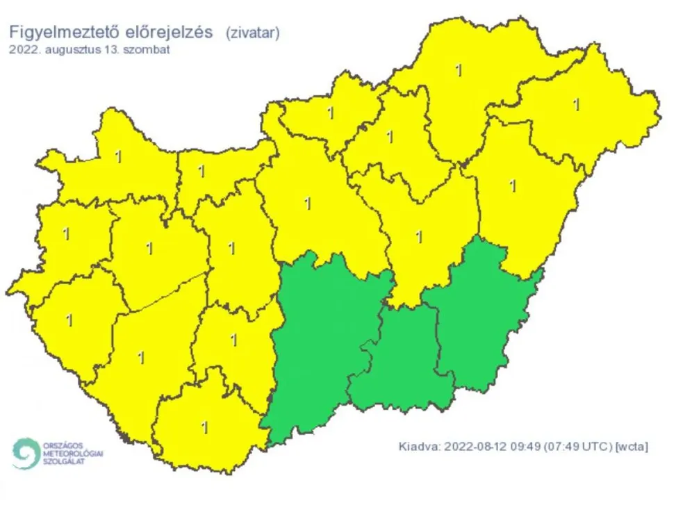 Szinte a teljes országra kiadták a riasztást a zivatarok miatt.