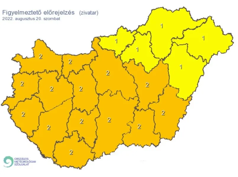 Szombaton, nemzeti ünnepünk napján gyakran lesz erősen gomolyfelhős az ég, és a nyugati, valamint a középső tájakon többfelé, több alkalommal számíthatunk záporokra, zivatarokra. Késő délutántól délnyugat felől rendszerbe szervezett heves zivatarok érkezhetnek, felhőszakadással, jégesőkkel. 24 és 34 fok közötti értékeket mérhetünk. Az északnyugati szél egyre nagyobb területen erősödik meg.