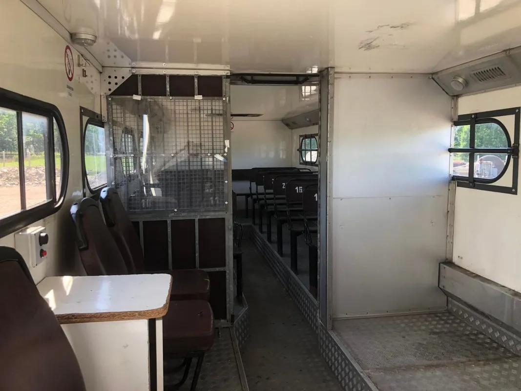 A rabszállító egyébként rendkívül jól hőszigetelt, francia szendvicspanelekből gyártották őket, 4-4,5 tonnát nyomnak. A dobozzal jár a belső „felszerelés” is, szóval három mini cellát is kap az illető, ha megveszi, ezenkívül körülbelül 20 személynek van még pad benne, illetve zárható tárolórekeszek is tartoznak hozzá.