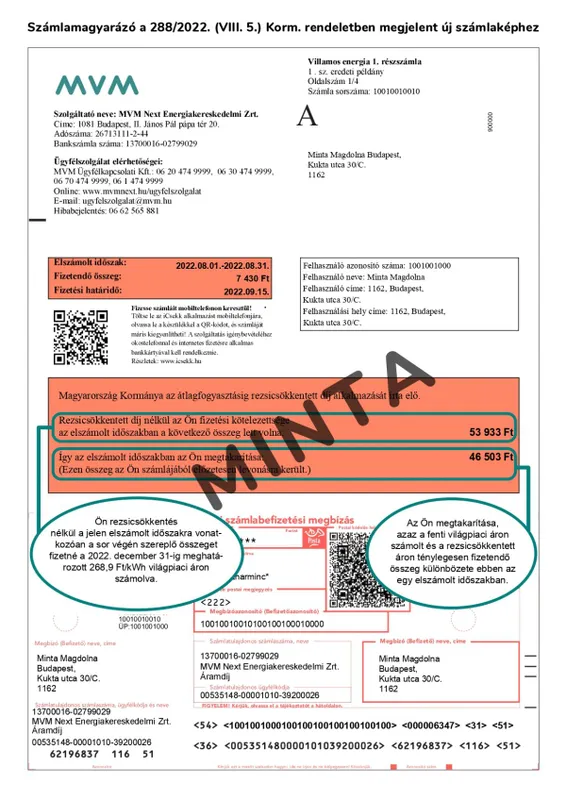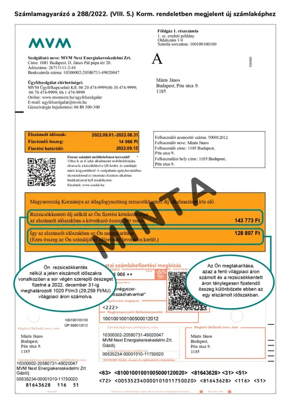 Az augusztustól életbe lépő rezsiszabályok részleteit a lakossági rezsiszámlák is tartalmazzák. Feltüntetik rajtuk többek között, hogy Magyarország Kormánya az átlagfogyasztásig rezsicsökkentett díj alkalmazását írta elő. A számlák tartalmazni fogják továbbá, hogy enélkül mekkora lett volna a befizetendő összeg és azt is, hogy a rezsicsökkentésnek köszönhetően mennyit takarított meg a lakossági fogyasztó.