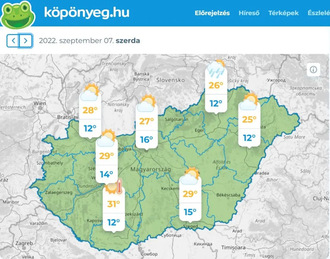 Mutatjuk, a ország melyik részén várható szerdán 12-31 fok.