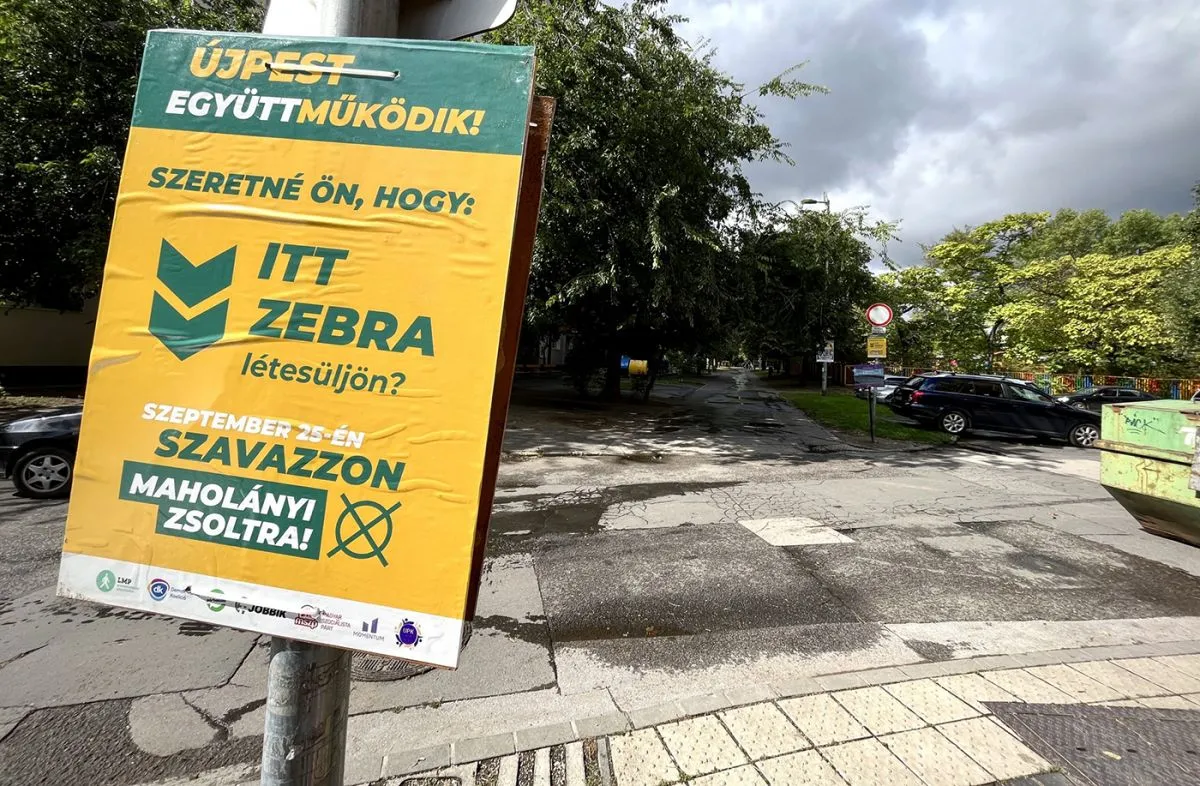 A Nyár utcai sétánynál ottjártunkkor már messziről virít az önkormányzat által kitett – egyébként a Momentum színeiben virító – üzenet: „Itt hamarosan gyalogátkelőhely létesül!” Mellette egy másik tábla díszeleg: „Szeretné Ön, hogy itt zebra létesüljön?” Majd azt sugallja, ennek feltétele, hogy szavazzon az ember az ellenzék jelöltjére a szeptember 25-i időközi választáson. Annak az ellenzéknek a jelöltjére, melynek három év is kevés volt, hogy egy ennyire egyszerű kampányígéretet valóra váltson.