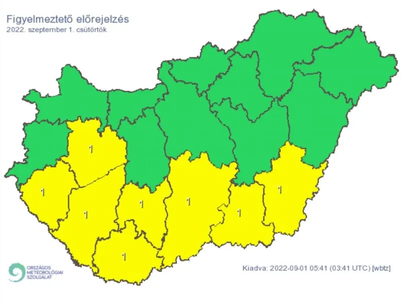 Csütörtökön így elsősorban a Dunántúl déli és középső részein a lehulló csapadék mennyisége meghaladhatja a 20 mm-t. A délkeleti határvidéken zivatarok is kialakulhatnak, melyeket intenzív csapadék (10-30 mm), szélerősödés és esetleg apró szemű jég kísérhet.