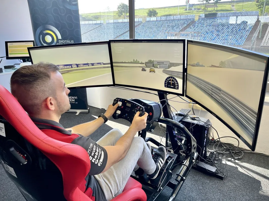 Ritka pillanat a Hungaroringen, amikor az ember nem az előtte elterülő pályát, hanem a monitort nézi. Pénteken mégis ez történt, amikor bemutatták a magyar fejlesztésű Digital Twin projektet, mely lehetővé teszi, hogy a kocsiban ülő, odakint száguldó versenyzővel egy szobai szimulátoron mérjük össze a tudásunkat – valós időben!