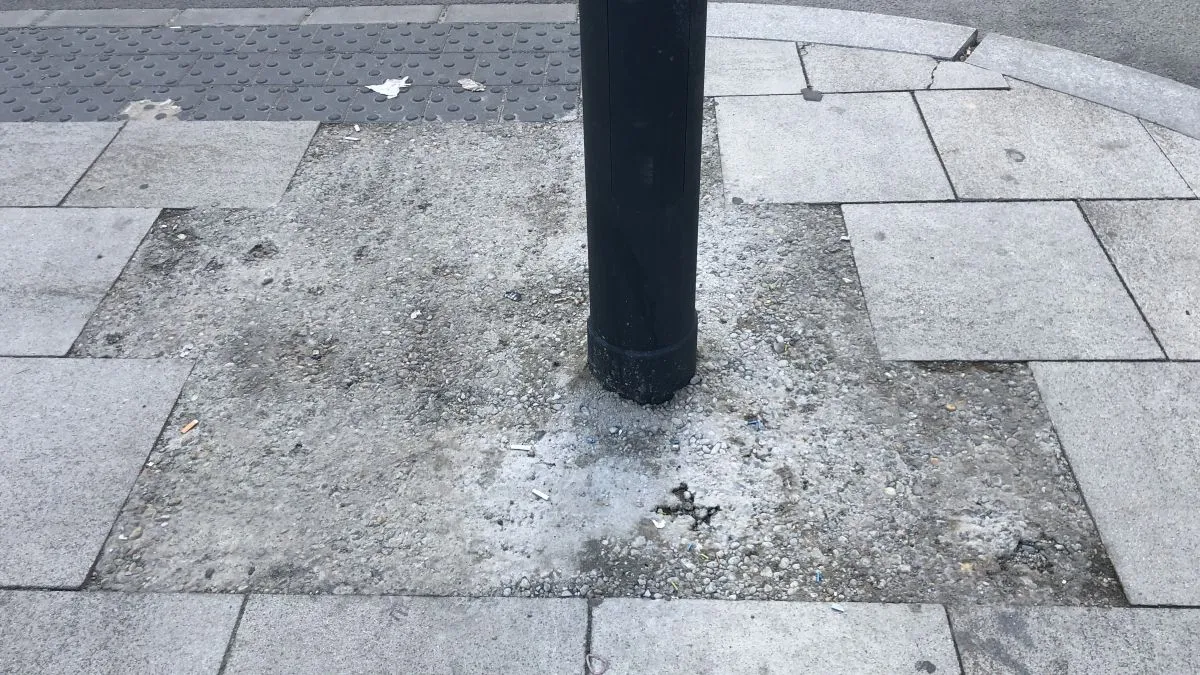 Ráadásul ott sem vették a fáradtságot az esztétikus munkára, ahol egy oszlop, vagy vezeték került függőlegesen a talajba. A kép tanúsága szerint itt is nemes egyszerűséggel kibetonozták azt a területet is, ahová még beilleszthettek volna járólapokat.