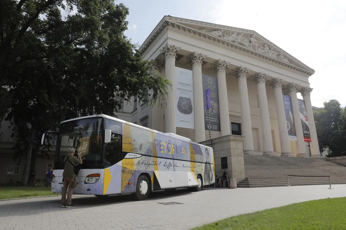 Ehhez kívülről feltűnő matricákkal, belülről pedig kultúrtörténeti emlékekkel pakoltak tele egy Setra autóbuszt, amelyre felszállva – a költő szavaival – a „változó szerencse szekerén” idézhetjük fel múltjának meghatározó állomásait.