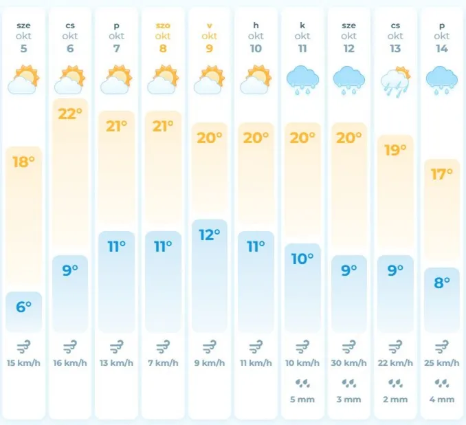 A hirtelen jött hétfői napsütést követően kedden tovább melegedett az idő. A koponyeg.hu előrejelzése szerint csütörtökön már 22 fok is lehet napközben, míg az idokep.hu előrejelzése szerint aznap akár 23 fokosra is felmelegedhet a levegő. A jó idő várhatóan egészen a jövő hét első feléig tart majd.