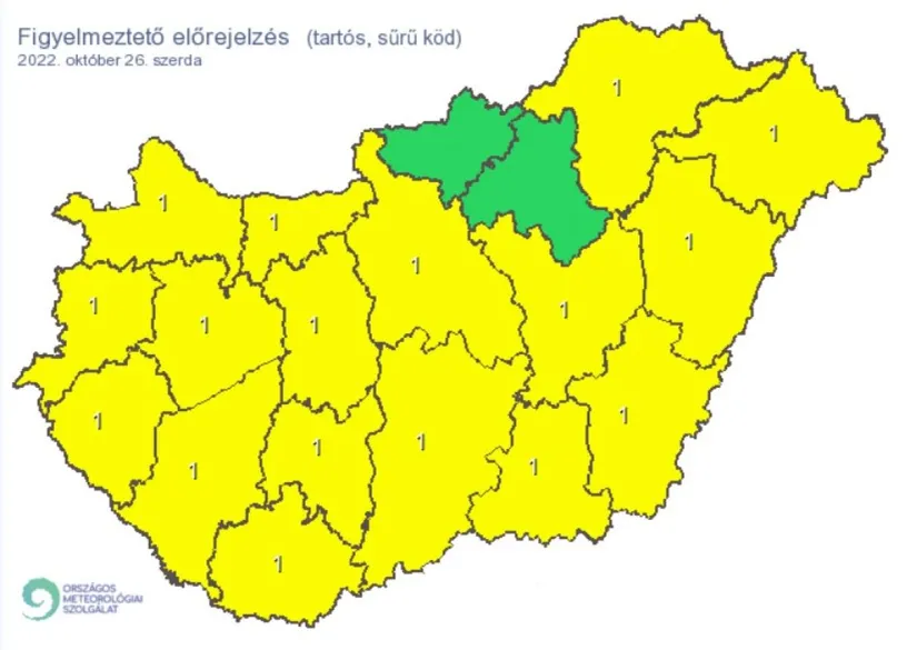 Kedd estétől nagy területen számítottak tartósabb, sűrű ködre, amely szerda napközben fokozatosan ritkul (illetve egy része rétegfelhőzetté alakul át), és a legtöbb helyen várhatóan megszűnik - legkésőbb a Dunántúl nyugati felén, illetve északkeleten. Szerda estétől ismét gyors romlásnak indulhatnak a látási viszonyok.