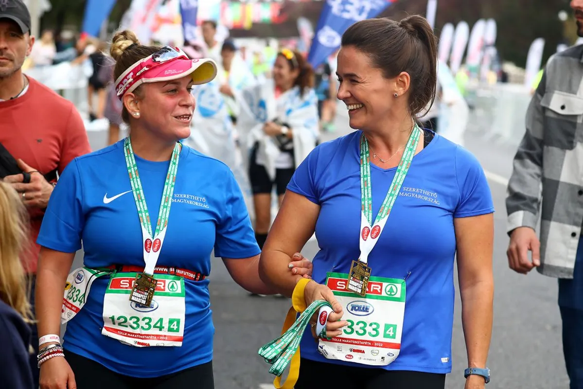 Nagy mosollyal állt rajthoz Novák Katalin köztársasági elnök futótársával a SPAR Budapest Maratonon és nagy mosollyal is ért célba.